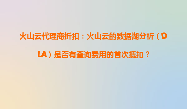 火山云数据湖分析(DLA)的查询费用首次抵扣详解 为什么选择火山云数据湖分析(DLA) 火山云作为字节跳动旗下的云服务平台,凭借其强大的技术背景和丰富的实践经验,为企业提供了高效、稳定的云计算服务。数...