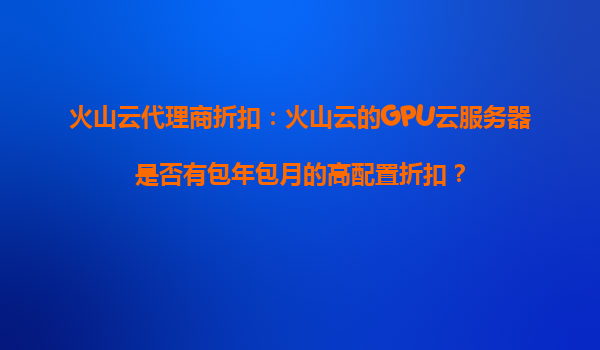 2025-10-31火山云GPU云服务器包年包月高配置折扣详解及代理商优势 一、火山云GPU云服务器高配置服务概述 火山云作为国内领先的云计算服务商之一,其GPU云服务器凭借高性能计算能力、弹性扩展和稳定可靠的特性,已...