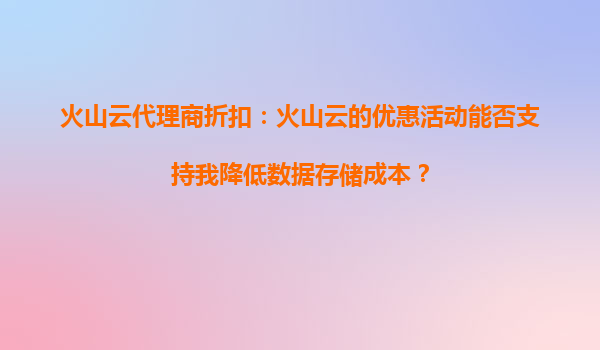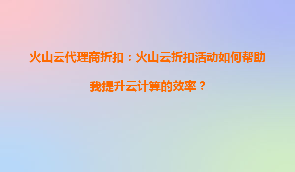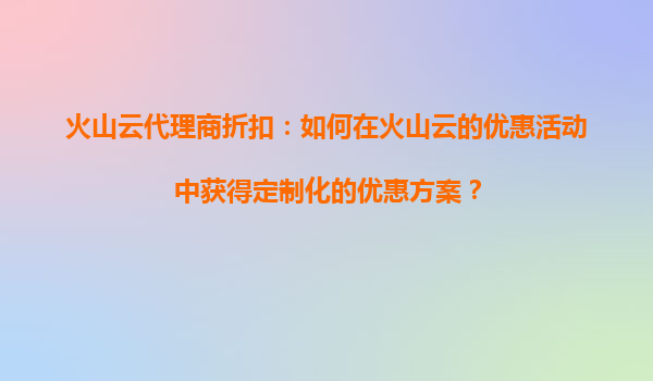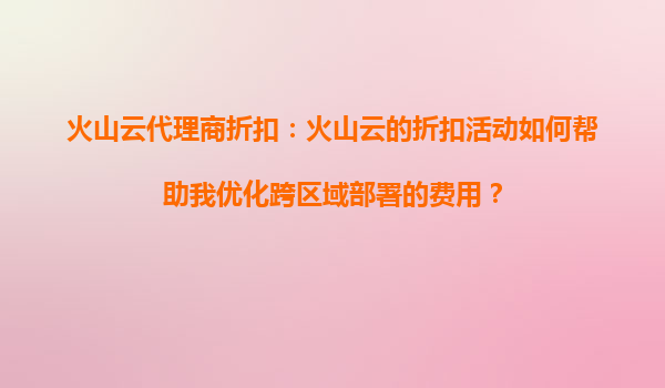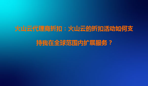 火山云代理商折扣:火山云的折扣活动如何支持我在全球范围内扩展服务? 一、火山云的全球化基础设施与代理商折扣的联动优势 火山云作为全球化云计算服务提供商...