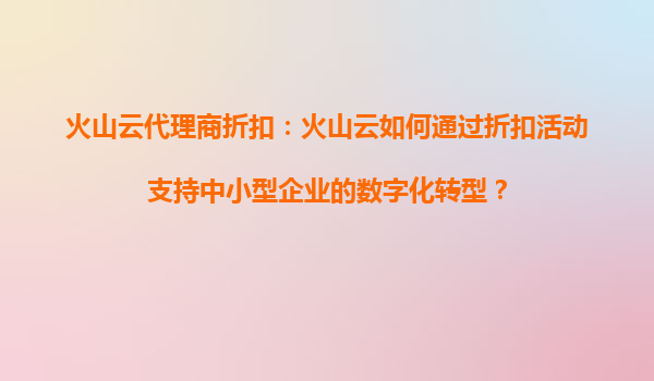 2025-09-06火山云代理商折扣:火山云如何通过折扣活动支持中小型企业的数字化转型? 一、引言:数字化浪潮下的中小企业困境 在当今数字经济快速发展的背景下,数字化转型已成为企业提升竞争力的关键。然而,对于资金...