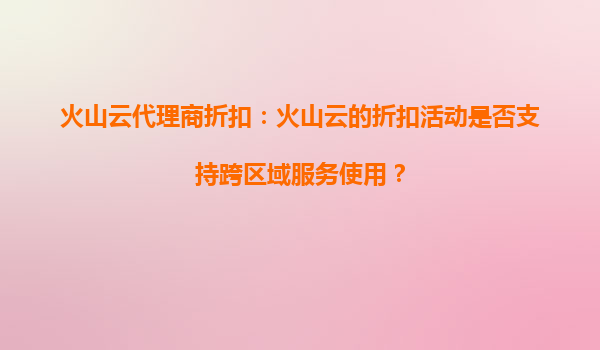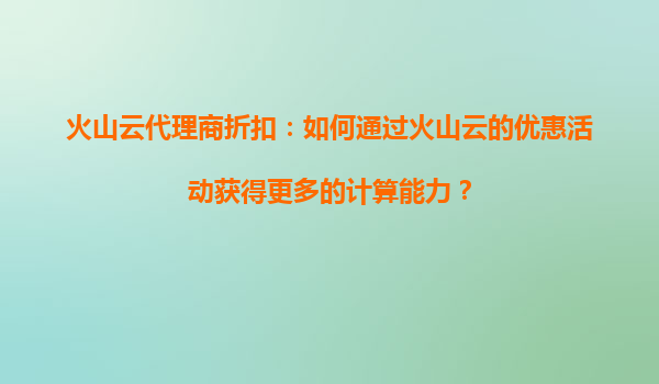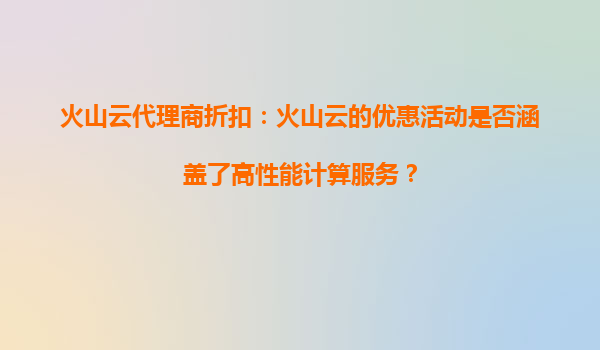 2025-09-03火山云代理商折扣:火山云优惠活动是否涵盖高性能计算服务? 一、火山云代理商的优惠活动范围 作为国内领先的云计算服务提供商,火山云近年来通过代理商渠道推出了多样化的优惠活动,旨...