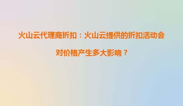 2025-09-03火山云代理商折扣:火山云提供的折扣活动会对价格产生多大影响? 一、火山云的优势概述 作为国内领先的云计算服务提供商,火山云凭借其强大的技术实力和资源优势,在市场中占据重要地位。其主要优势包...