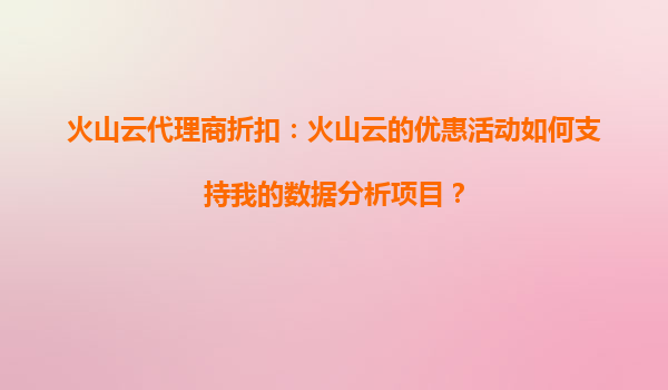 火山云代理商折扣:如何通过火山云优惠活动赋能数据分析项目 一、火山云:数据分析的强大技术底座 火山云作为字节跳动旗下的云计算服务品牌,凭借高性能计算能...
