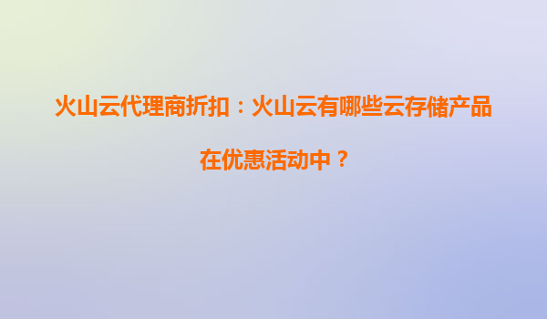 2025-09-03火山云代理商折扣:火山云存储产品优惠活动全解析 一、火山云存储产品矩阵及当前优惠 作为字节跳动旗下的云计算品牌,火山引擎(VolcanoEngine)提供多款高性价比云存储产品,目前通过代理商...