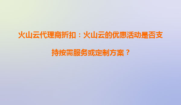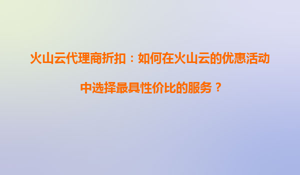 2025-09-02火山云代理商折扣:解读适用性与核心优势 一、火山云折扣活动是否覆盖所有服务? 火山云作为字节跳动旗下的云计算服务平台,其代理商推出的折扣活动通常能吸引大量企业用户关注。但用户...