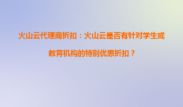 2025-09-02火山云代理商折扣:学生与教育机构的特别优惠解析 一、火山云简介与核心优势 火山云是字节跳动旗下的云计算服务品牌,依托母公司强大的技术积累,为企业及开发者提供稳定、高效的云服务解决方案。其...