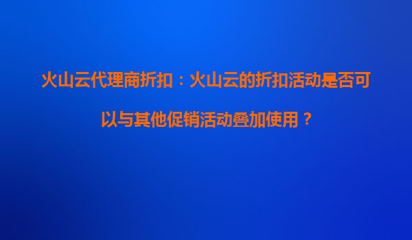 2025-08-28火山云代理商折扣政策解析 火山云作为国内领先的云计算服务提供商,其代理商折扣政策一直备受关注。许多用户关心火山云的折扣活动是否可以与其他促销活动叠加使用。根据官方政策,火山云的代理商折扣通常不能与其他...