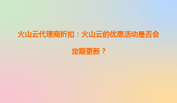 2025-08-28火山云代理商折扣:火山云的优惠活动是否会定期更新? 在当今数字化时代,云计算服务已成为企业发展的核心驱动力之一。火山云作为国内领先的云计算服务提供商,凭借其高性能、高可靠性和灵活的解决方案,赢得了...