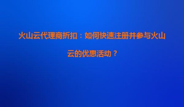 2025-08-28火山云代理商折扣:如何快速注册并参与火山云的优惠活动? 一、火山云的核心优势 火山云作为国内领先的云计算服务提供商,凭借其强大的技术实力和丰富的行业经验,为企业用户提供了高效、稳定且安...