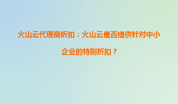 2025-08-29火山云代理商折扣政策解析:中小企业如何享受专属优惠? 火山云为中小企业量身定制折扣方案 作为国内领先的云计算服务商,火山云充分理解中小企业在数字化转型过程中的预算压力。通过官方代理商渠道,企业...