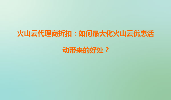火山云代理商折扣:火山云优惠活动如何影响你的云资源分配? 引言 在数字化转型的浪潮中,云计算已成为企业IT基础设施的核心组成部分。火山云作为国内领先的云...