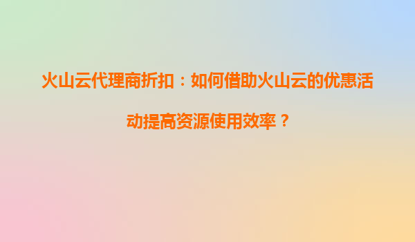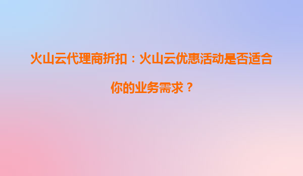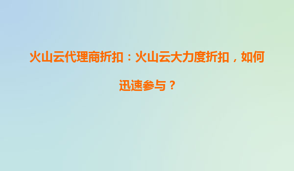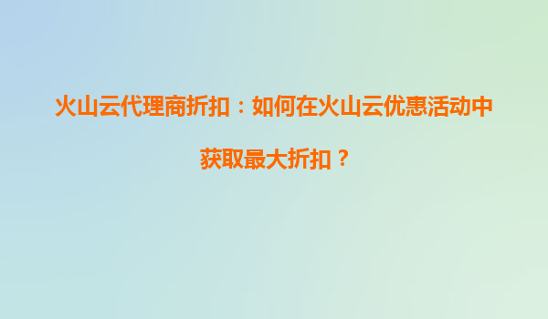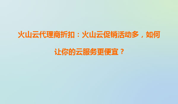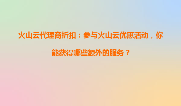 2025-08-27火山云代理商折扣:参与火山云优惠活动,你能获得哪些额外的服务? 引言 在当今数字化时代,云计算服务已成为企业提升效率、降低成本的重要工具。火山云作为国...