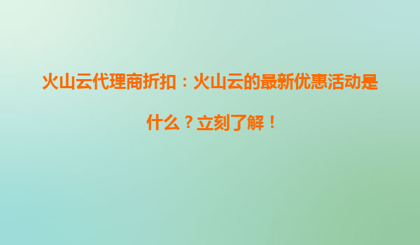 2025-08-27火山云代理商折扣:火山云的最新优惠活动解析 一、火山云最新优惠活动概览 火山云作为国内领先的云计算服务提供商,近期推出了一系列针对企业和个人开发者的优...
