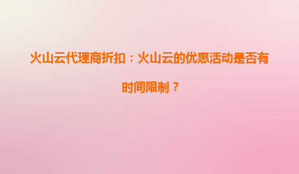 2025-08-27火山云代理商折扣:火山云的优惠活动是否有时间限制? 一、火山云的核心优势 火山云作为国内领先的云计算服务提供商,凭借其强大的技术实力和丰富的行业经验,为用户提供了高性能、高可靠性的云服务解决方...