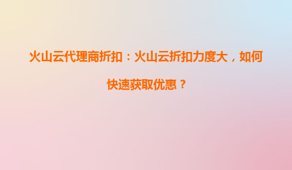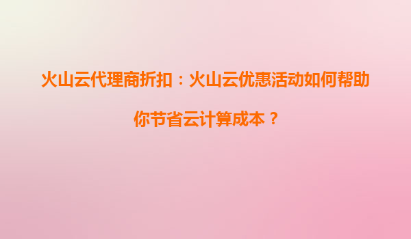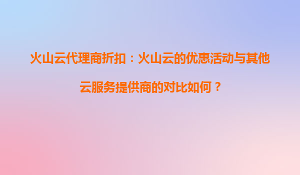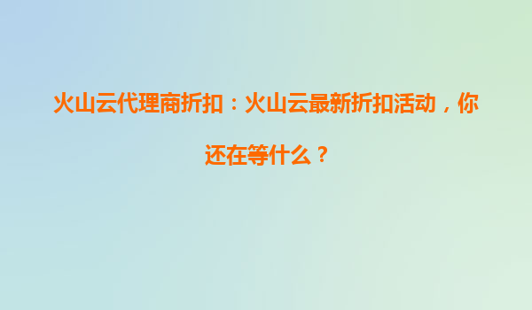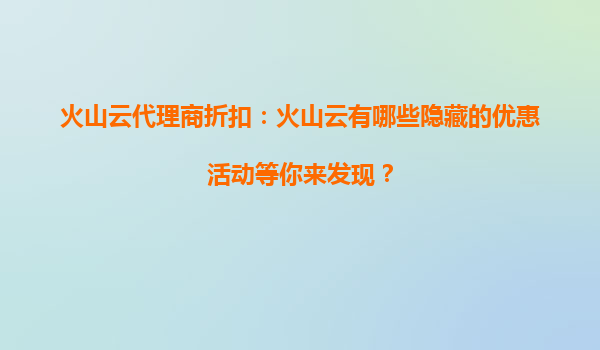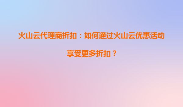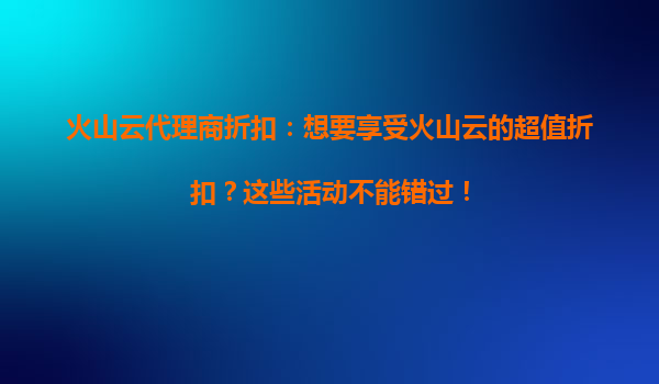 2025-08-26火山云代理商折扣:火山云的折扣活动值得长期关注吗? 引言 在云计算市场竞争日益激烈的今天,各大云服务提供商纷纷推出各种优惠活动来吸引用户。火山云作为国...