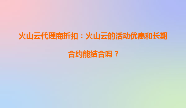 火山云代理商折扣:活动优惠与长期合约的完美结合 一、火山云的核心优势 火山云作为国内领先的云计算服务提供商,凭借其强大的技术实力和稳定的基础设施,为企业用户提供了高性能、高可用的云服务解决方案...