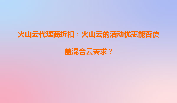 2025-08-25火山云代理商折扣:火山云的活动优惠能否覆盖混合云需求? 一、火山云的核心优势与混合云需求背景 火山云作为字节跳动旗下的云计算服务品牌,凭借其弹性计算、全球加速网络、大数据分析...