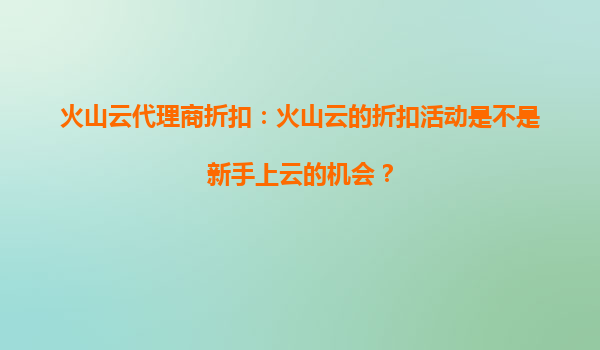 2025-08-25火山云代理商折扣:火山云的优惠活动中隐藏的福利有哪些? 一、火山云的核心优势与代理商价值 火山云作为国内领先的云计算服务提供商,凭借高性能计算资源、弹性扩展能力和全球化节点布局,为企业用户提供...