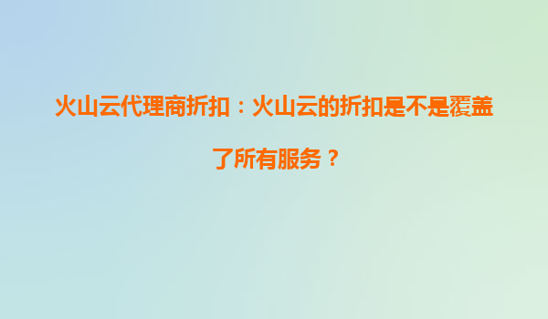 2025-08-24火山云代理商折扣:是否覆盖所有服务? 在当今数字化时代,云计算服务已成为企业IT基础设施的核心组成部分。火山云作为国内领先的云计算服务提供商,凭借其高性能、高可靠性和灵活的解决方案,赢得了众多企业的...