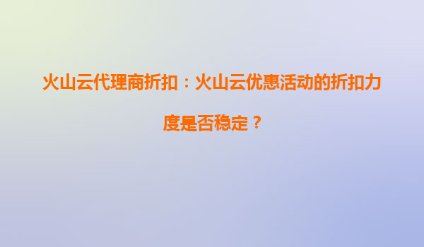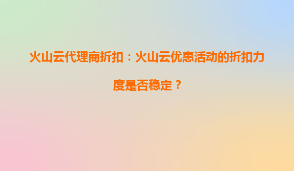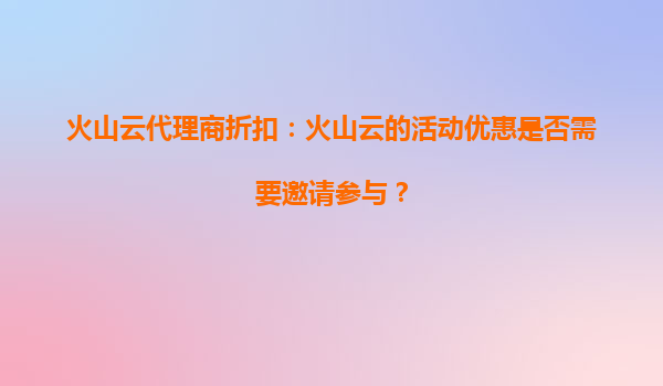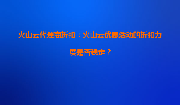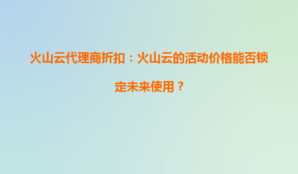 火山云代理商折扣:火山云的活动价格能否锁定未来使用? 在云计算服务市场竞争日益激烈的今天,企业和个人用户对于云服务的价格敏感度越来越高。火山云作为国内领先的云计算服务提供商,凭借其高性能、高可靠...
