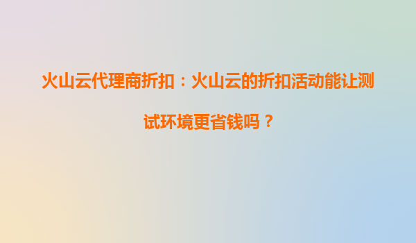2025-08-24火山云代理商折扣:测试环境的省钱利器 测试环境的成本痛点 企业在开发测试阶段往往面临资源投入与成本控制的矛盾。传统自建测试环境需要采购硬件、维护系统,前期投入大且利用率低;而直接使用公有云按量付费...
