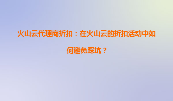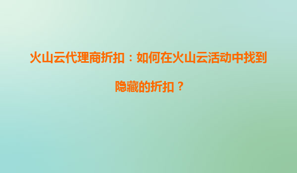 2025-08-24火山云代理商折扣解析:活动折扣能否叠加使用? 一、火山云代理商折扣政策解读 火山云作为字节跳动旗下的云计算服务品牌,为代理商和终端用户提供了多样化的优惠活动。关于“活动折扣能...