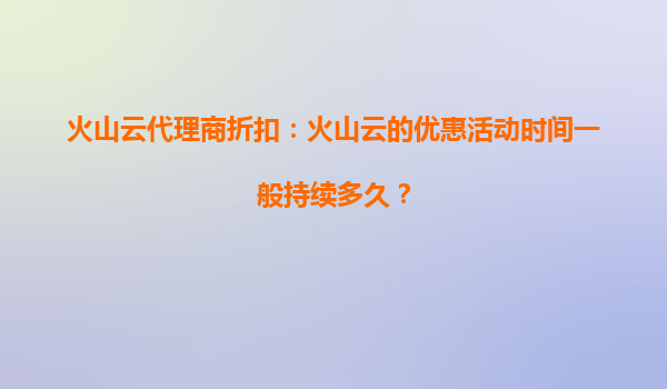 2025-08-24火山云代理商折扣活动解析:优惠时长与核心优势 火山云优惠活动周期特点 火山云面向代理商的折扣活动通常以季度为单位滚动开展,单次活动持续时间一般为1-3个月。新用户首次合作时可享受限时30天的专项折扣...