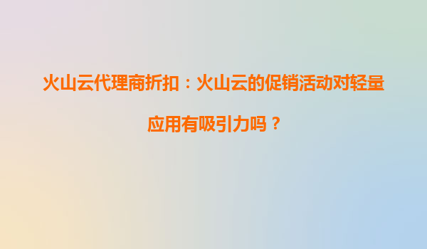 2025-08-24火山云代理商折扣:火山云的促销活动对轻量应用有吸引力吗? 在当今快速发展的云计算市场中,越来越多的企业和开发者开始关注轻量级应用的部署与管理。火山云作为国内领先的云计算服务提供商,凭借其强大的技术...