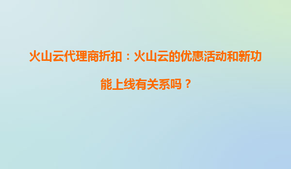 火山云代理商折扣与火山云新功能上线的关联性分析 在云计算服务市场竞争日益激烈的今天,各大云服务提供商纷纷推出各种优惠活动和折扣政策来吸引客户。作为国内领先的云计算服务商之一,火山云也不例外。很多用...