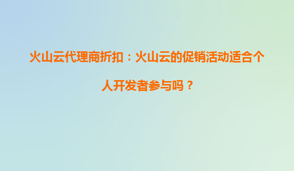 2025-08-23火山云代理商折扣:火山云的促销活动适合个人开发者参与吗? 引言 在云计算服务竞争激烈的今天,各大云服务商纷纷推出各种促销活动来吸引用户。火山云作为字节...