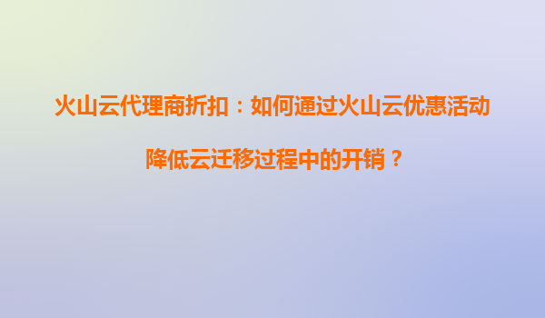 2025-08-23火山云代理商折扣:如何通过火山云优惠活动降低云迁移过程中的开销? 一、云迁移的成本挑战 企业在上云或迁移过程中,往往面临计算资源、存储、网络带宽等多项成本压力。传统自建IDC或直接使用公有云...