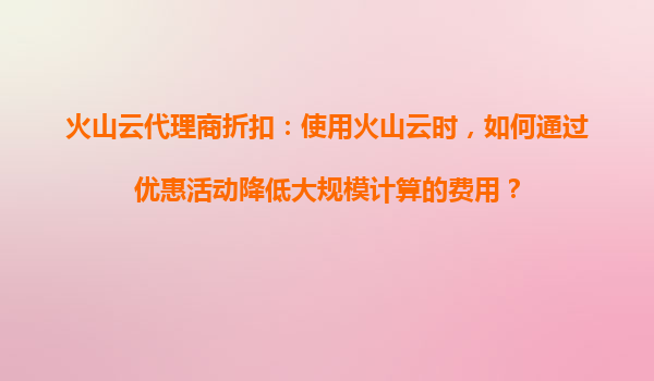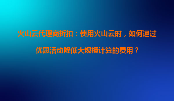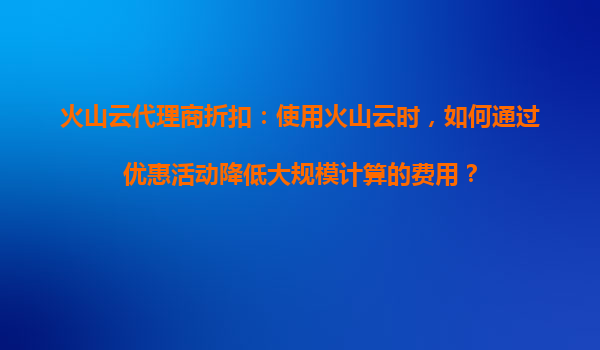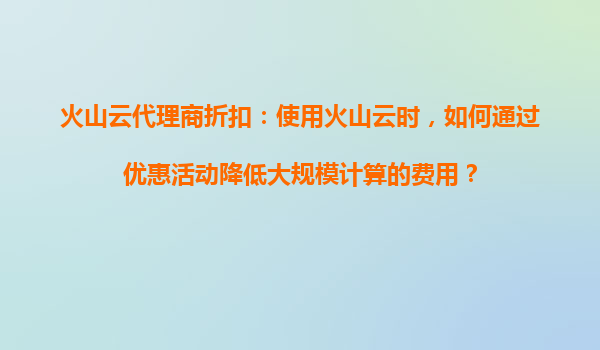 2025-08-23火山云代理商折扣:使用火山云时,如何通过优惠活动降低大规模计算的费用? 一、火山云的核心优势与大规模计算场景 火山云作为字节跳动旗下的云计算服务平台,凭借弹性伸缩、高性能计算集群和全球化基础设施布...