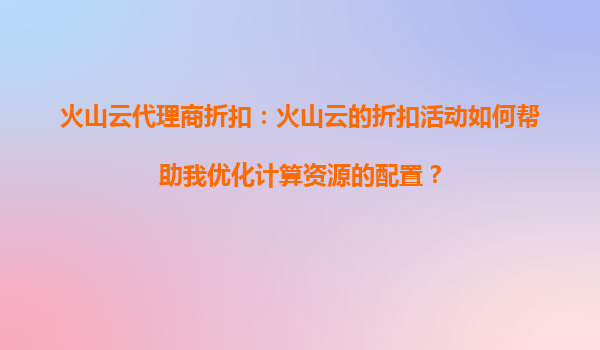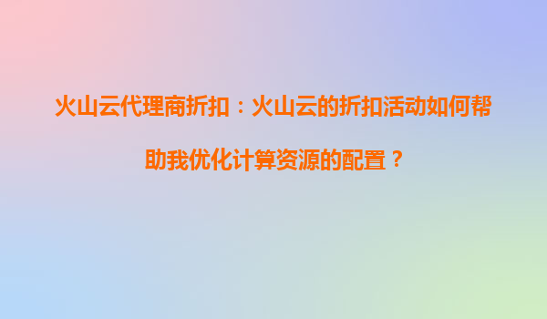 2025-08-23火山云代理商折扣:如何通过折扣活动优化计算资源配置 引言 在当今数字化时代,云计算已成为企业IT基础设施的核心组成部分。然而,随着业务规模的扩大,计算资...