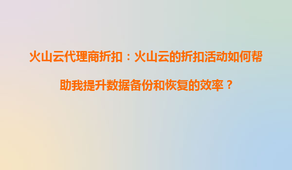 火山云代理商折扣:如何通过折扣活动提升数据备份与恢复效率? 引言 在数字化时代,数据已成为企业最核心的资产之一。无论是业务数据、客户信息还是内部文档,一旦丢失或损坏,都可...