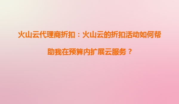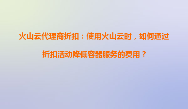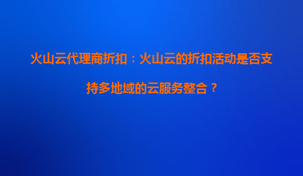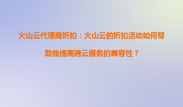 火山云代理商折扣:如何通过折扣活动提升跨云服务兼容性 引言 在当今的数字化时代,企业越来越依赖云计算服务来支持其业务运营。然而,随着多云环境的普及,跨云服务的兼容性问题逐渐成为企业面临...