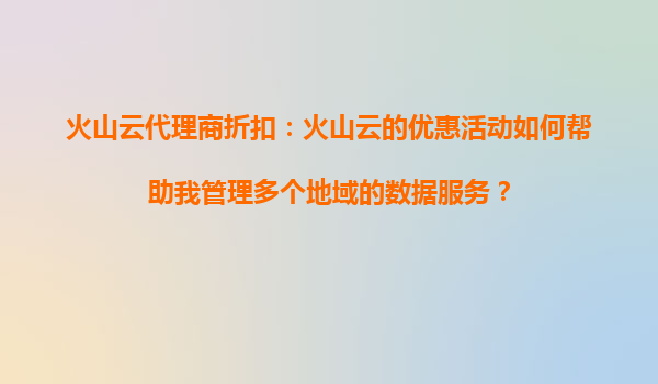 2025-08-22火山云代理商折扣:如何通过优惠活动高效管理多地域数据服务? 一、引言:企业多地域数据管理的挑战 在全球化业务布局的背景下,企业常需在不同地域部署数据服务以满足合规性、低延迟等需求。然而,跨地域...