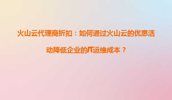 2025-08-22火山云代理商折扣:如何通过火山云的优惠活动降低企业的IT运维成本? 引言 在数字化转型的浪潮中,企业IT运维成本的控制成为许多公司关注的焦点。云计算服务因其弹性、高效和低成本的特点,逐渐成...