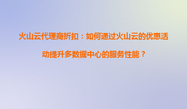 2025-08-23火山云代理商折扣:如何通过火山云的优惠活动提升多数据中心的服务性能? 引言 在当今数字化时代,企业对于云计算服务的需求日益增长,尤其是多数据中心的服务性能优化成为许多企业...