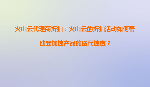 2025-08-22火山云代理商折扣:如何通过火山云折扣活动加速产品迭代? 一、火山云的资源优势与敏捷开发潜力 火山云作为云计算服务提供商,其核心优势在于弹性资源、高可用架构和全球化基础设施。通...