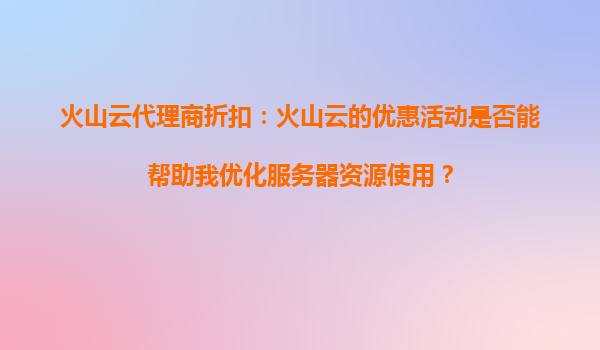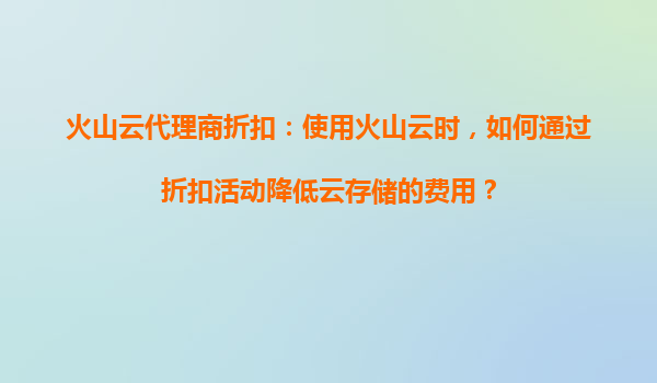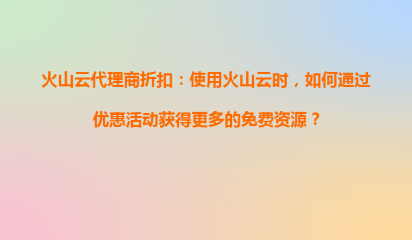 2025-08-22火山云代理商折扣:如何利用优惠活动优化服务器资源使用? 引言 在当今数字化时代,高效利用云计算资源已成为企业降本增效的关键。火山云作为国内领先的云计算服务提供商,通过丰富的产品线和灵活的计费模...