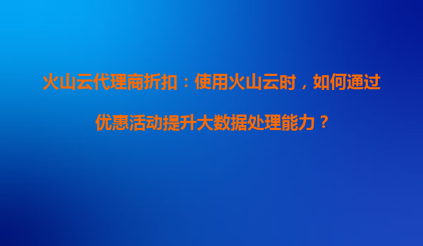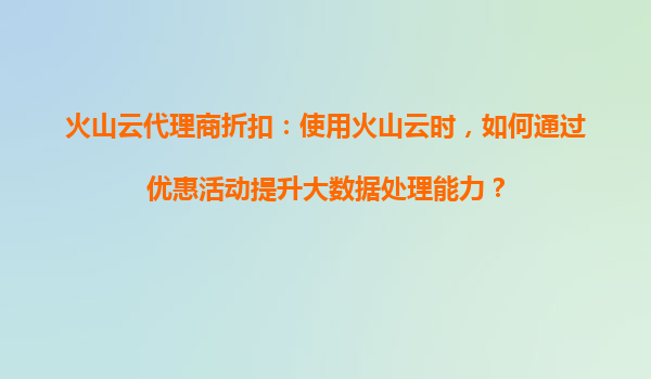 2025-08-22如何通过火山云代理商折扣提升大数据处理能力? 一、火山云在大数据处理中的核心优势 火山云作为领先的云计算服务提供商,其大数据处理解决方案具有以下突出优势: ...