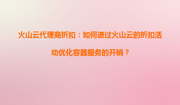 2025-08-22火山云代理商折扣:如何通过火山云的折扣活动优化容器服务的开销 在当今云计算市场竞争日益激烈的背景下,企业的IT成本优化成为一个重要课题。作为国内领先的云计算服务提供商,火山云凭借其灵活的产品架构、完善...