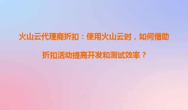 火山云代理商折扣:使用火山云时,如何借助折扣活动提高开发和测试效率? 一、火山云的核心优势与开发测试效率提升 火山云作为领先的云计算服务提供商,通过弹性资源分配...