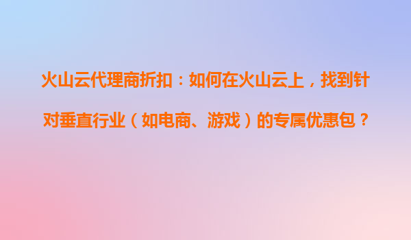 2025-10-29火山云代理商折扣:如何在火山云上找到针对垂直行业(如电商、游戏)的专属优惠包? 一、火山云的核心优势与行业适配性 火山云作为字节跳动旗下的云计算服务品牌,凭借其底层技术架构和全球化资源...