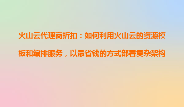 2025-10-29火山云代理商折扣:如何利用火山云的资源模板和编排服务,以最省钱的方式部署复杂架构? 1.火山云的核心优势与代理商折扣价值 火山云作为企业级云计算平台,提供高性能计算、弹性扩展和全球...