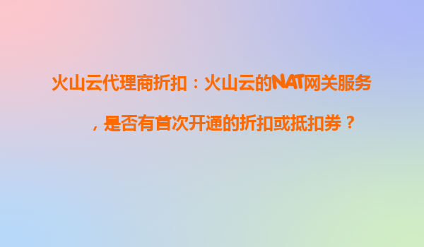火山云NAT网关服务优势解析及新用户折扣政策 一、火山云NAT网关的独特优势 火山云作为字节跳动旗下的云计算品牌,凭借其技术沉淀和全球化基础设施,在NAT网关服...