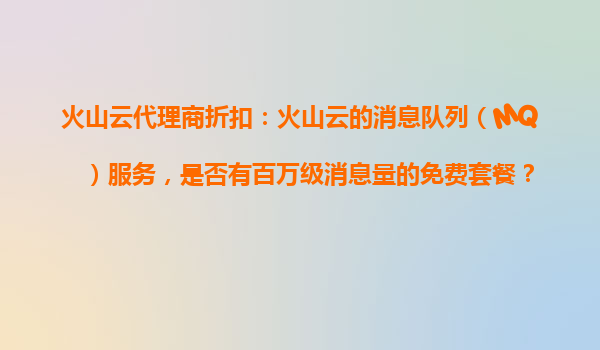 2025-10-29火山云消息队列(MQ)服务免费套餐解析及代理商优势详解 一、火山云MQ服务免费套餐详情 截至目前,火山云消息队列(MQ)服务确实为开发者提供了免费套餐选项,但需要特别注意: 免费额度...