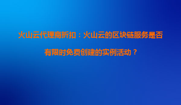 2025-10-29火山云代理商折扣:限时免费区块链服务实例活动解析 一、火山云区块链服务的核心优势 火山云作为字节跳动旗下的云计算品牌,其区块链服务凭借以下差异化优势在行业中脱颖而出: 高性...