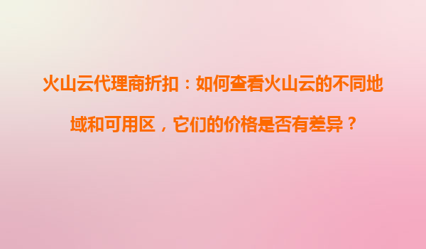 2025-10-29火山云代理商折扣:如何查看火山云的不同地域和可用区及价格差异 火山云的地域与可用区概述 火山云作为字节跳动旗下的云计算服务品牌,提供了全球范围内的多地...
