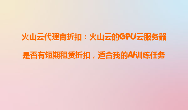 2025-10-29火山云GPU云服务器短期租赁折扣与AI训练任务的解决方案 一、火山云GPU云服务器的核心优势 随着AI技术的快速发展,企业对高性能计算资源的需求日益增长。火山云作为行业领先的云服务提供商,其GPU...